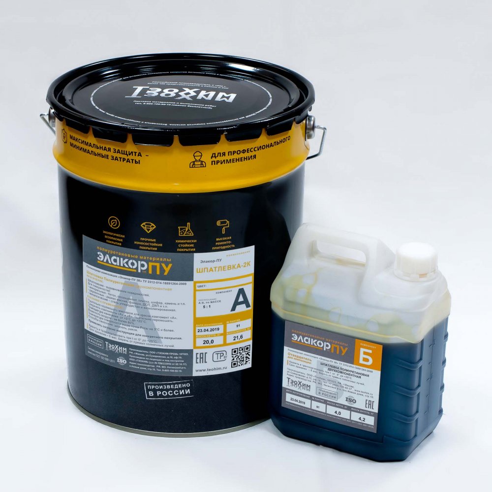 Шпатлёвка-2К - полиуретановая шпатлевка для бетона "Элакор-ПУ Шпатлевка-2К – полиуретановая шпаклевка для бетона, бетонного пола, дерева, металла. Цветной двухкомпонентный полиуретановый состав. Имеет высокую адгезию к большинству материалов, вследствие ч